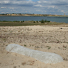 Betonkörpern im Uferbereich des Bärwalder Sees und markiert so eine